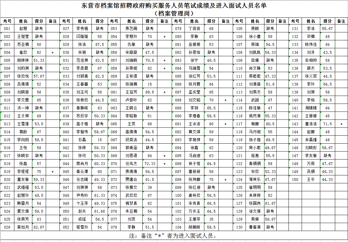 二、按照筆試成績,以1:3的比例確定進(jìn)入面試的人員。筆試缺考人員,成績?yōu)椤?”。